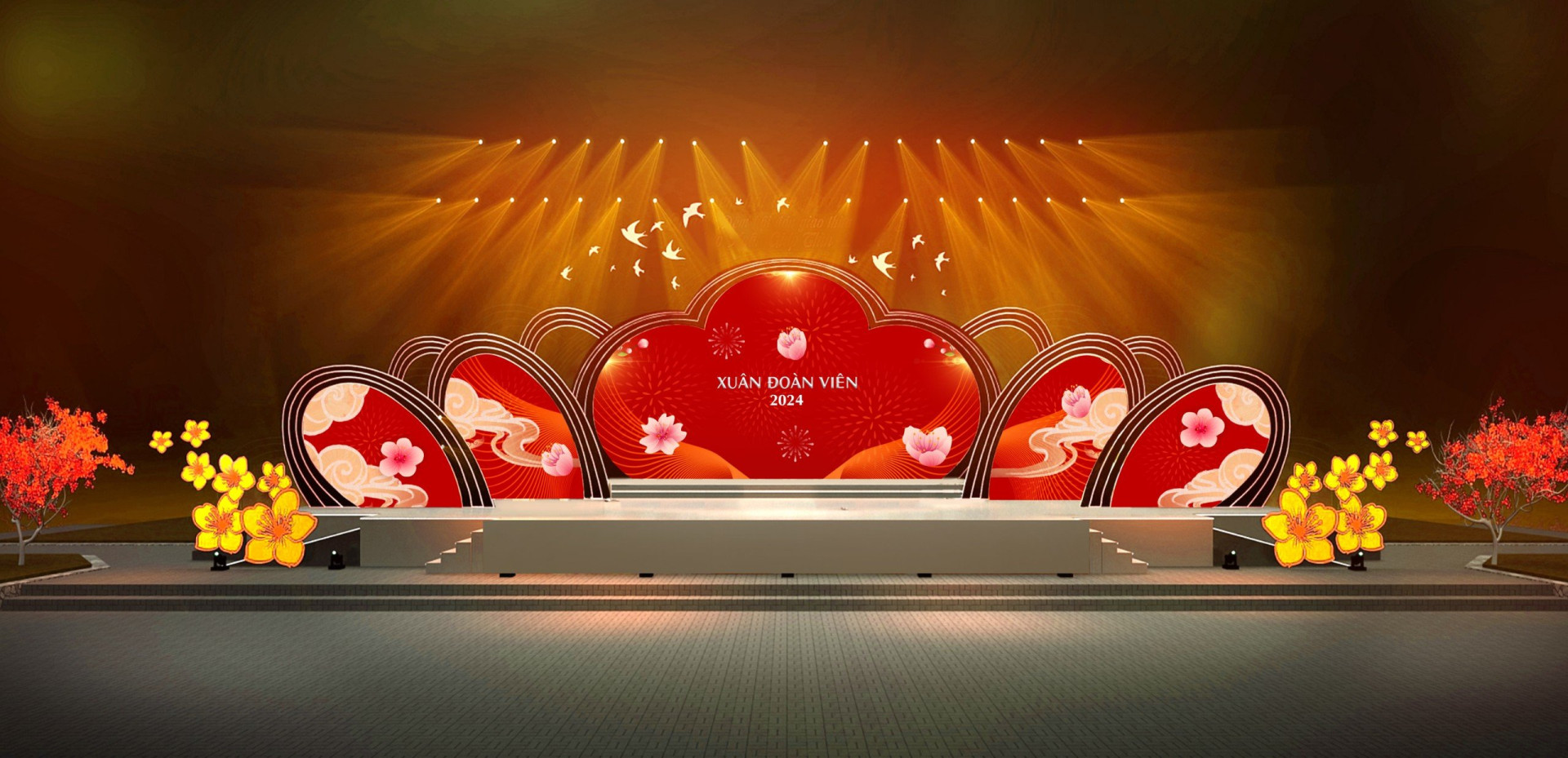 Thiết kế sân khấu đón Xuân Giáp Thìn 2024 của tỉnh QN